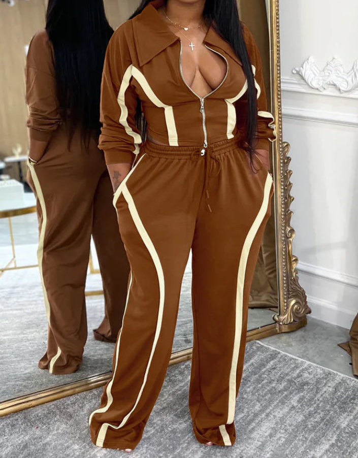Oversized strip set , zip up mid crop jacket , long oversize pants , great stretch good material